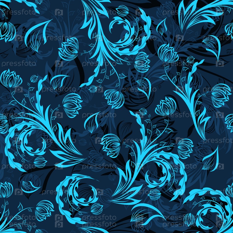 Синий цветочный орнамент. Бесшовная векторная иллюстрация