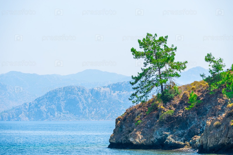 Пышные сосны, растущие на скалах у моря