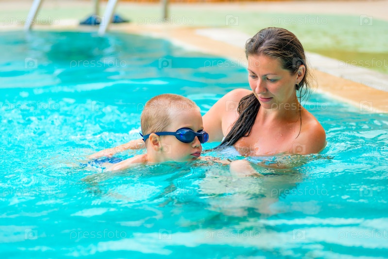 Мальчик учится плавать