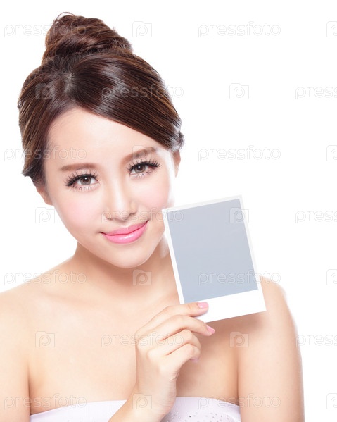 Женщина показывает рамку для текста