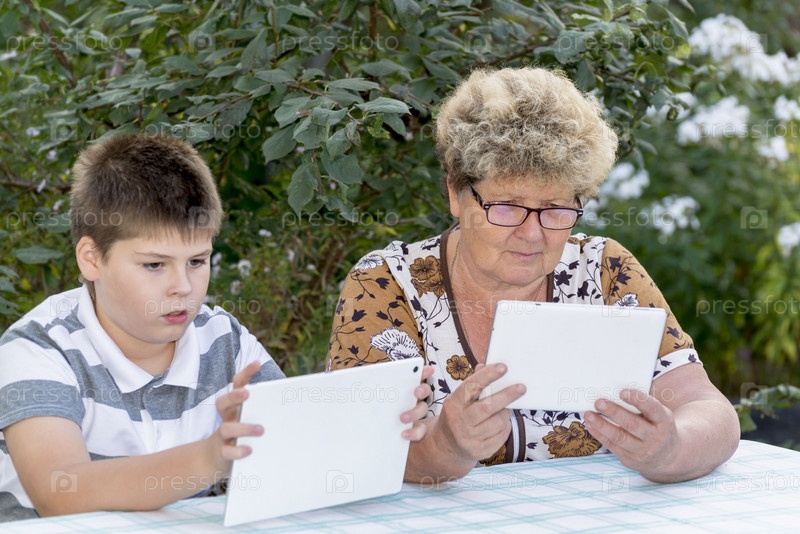 Бабушка и внук с планшетом