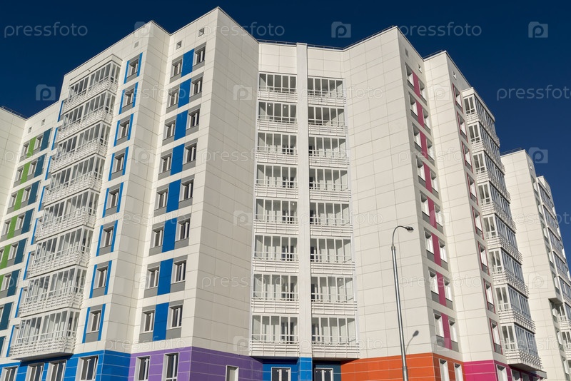 Жилое здание на фоне голубого неба