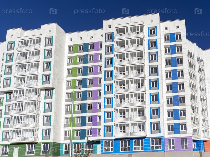 Жилое здание на фоне голубого неба