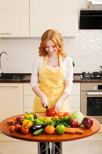 Молодая женщина готовит на кухне