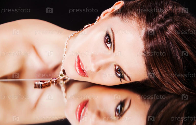 Модель отражается в зеркальном столе