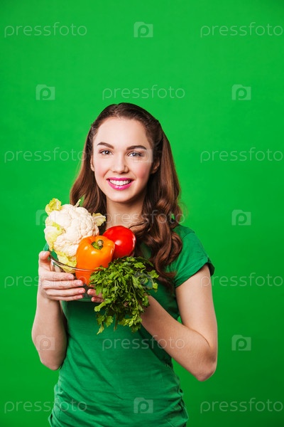 Молодая женщина с овощами в руках