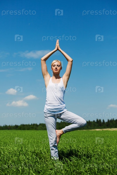 Женщина занимается йогой