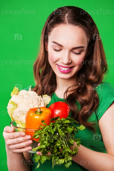 Красивая женщина со свежими овощами