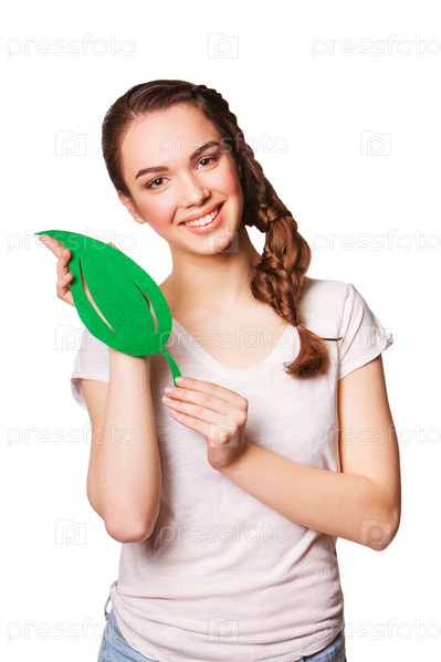 Женщина с зеленым листом