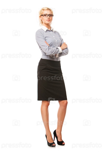 Портрет молодой бизнес-леди на белом фоне