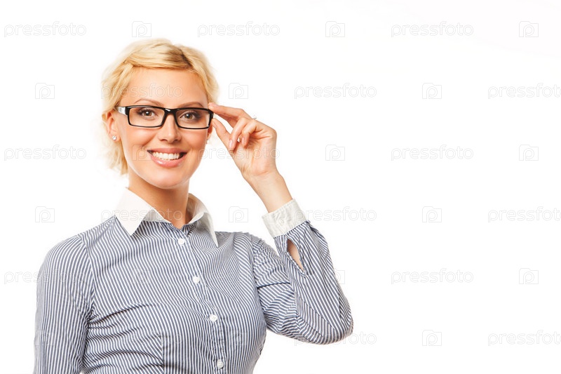 Портрет молодой бизнес-леди на белом фоне