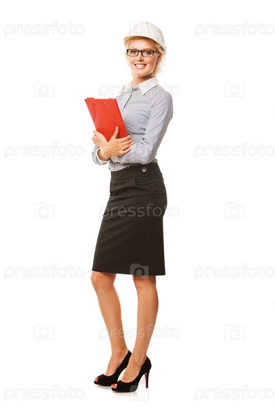 Портрет молодой бизнес-леди на белом фоне