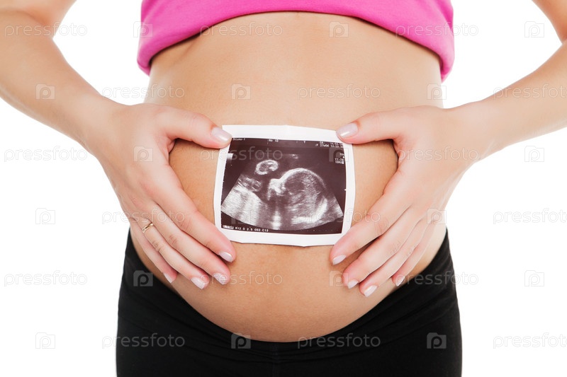 Беременная женщина, держащая кадр ультразвукового обследования