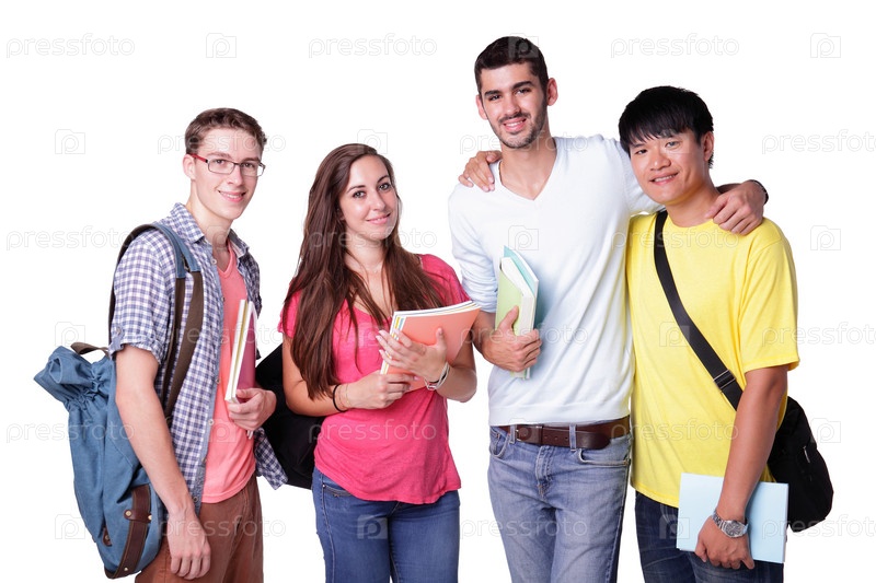 Группа студентов на белом фоне
