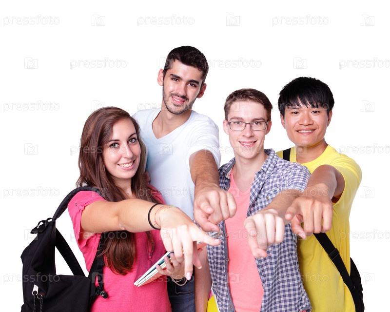 Группа студентов на белом фоне