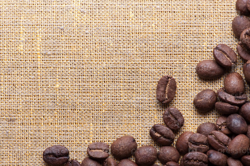 Кофейные зерна на мешковине