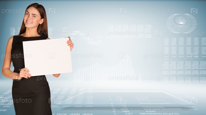 Бизнес-леди с баннером для текста