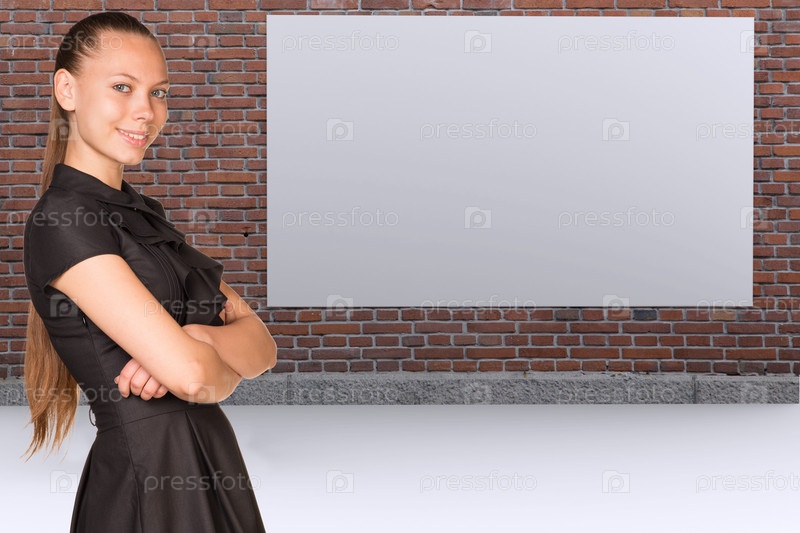 Деловая женщина и белый плакат