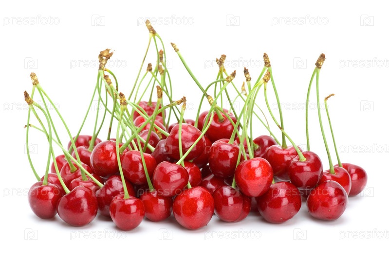 Красная черешня на белом фоне