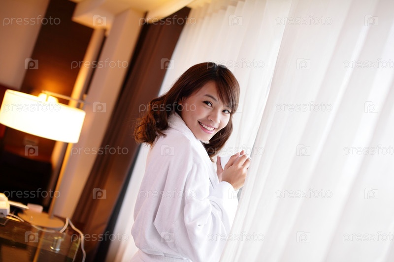 Женщина в халате с чашкой кофе