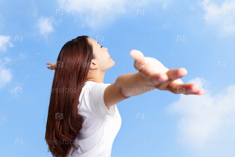 Счастливая женщина на фоне неба