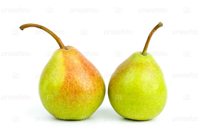 Две зеленых груши на белом фоне