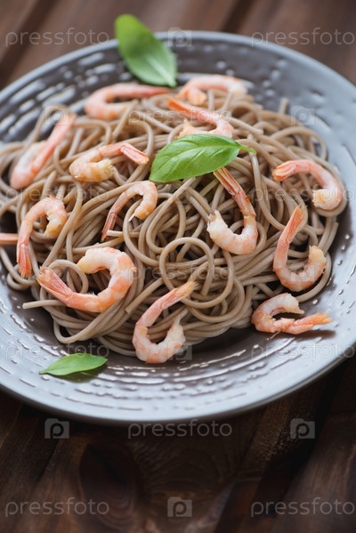 Лапша соба с креветками