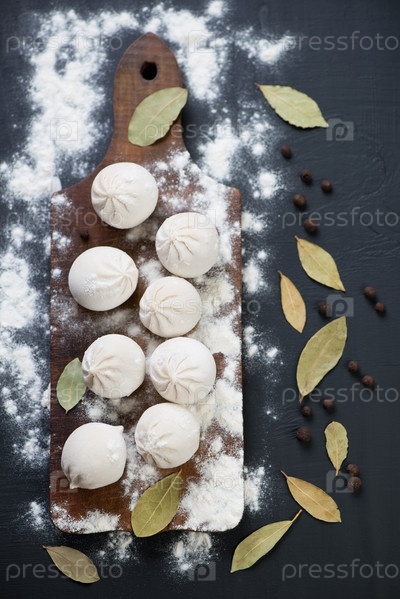 Сырые хинкали, лавровый лист и перец