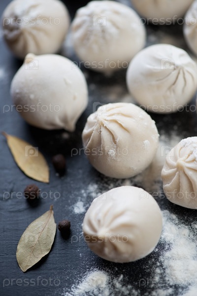 Сырые хинкали, лавровый лист и перец