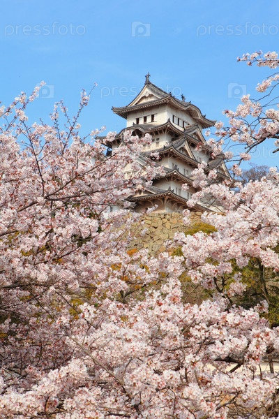 Японский замок и цветущие вишни