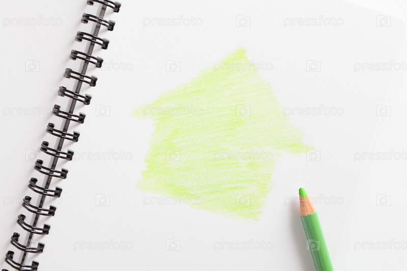 Блокнот и зеленый карандаш