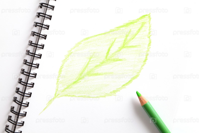 Зеленый лист нарисован в блокноте