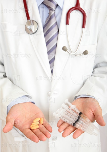 Доктор держит шприцы в руке