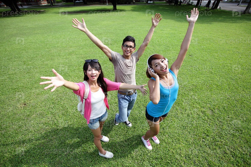 Счастливые студенты на свежем воздухе