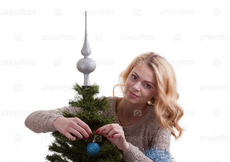 Девушка украшает новогоднюю елку