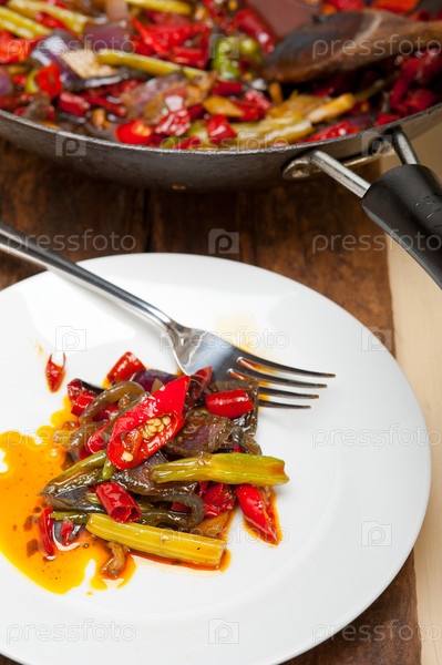 Жареный чили и овощи