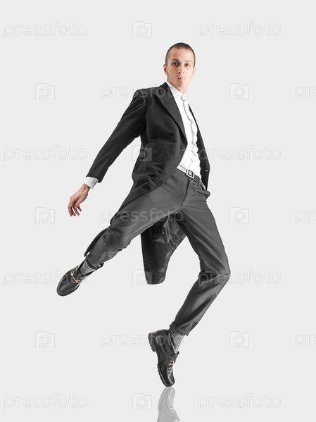 Молодой мужчина в костюме на светлом фоне