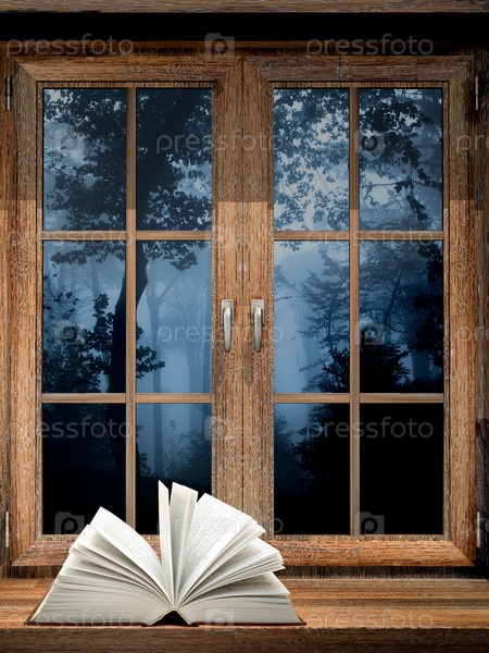 Открытая книга на подоконнике