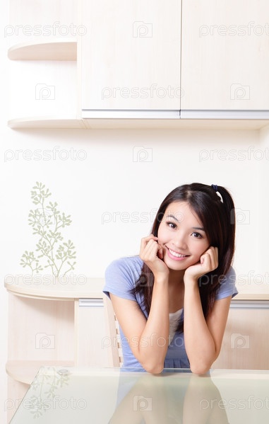 Молодая женщина сидит за столом