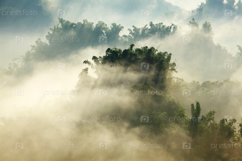 Утренний туман в бамбуковой роще