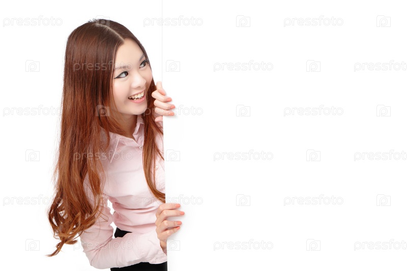 Женщина показывает баннер