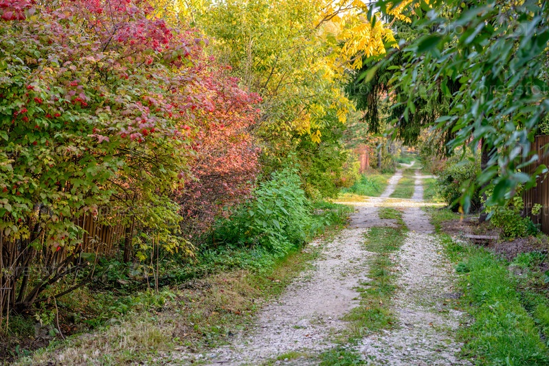 Осенние деревья вдоль на проселочной дороги