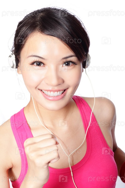 Женщина занимается спортом под музыку