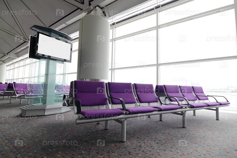 Телевизор и кресла в зале ожидания в аэропорту