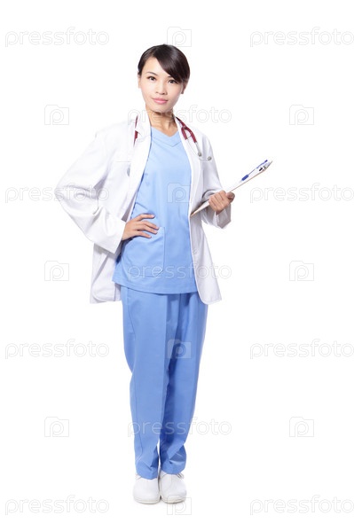 Женщина-врач на белом фоне