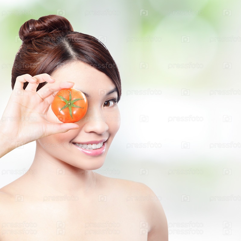 Счастливая женщина с помидором