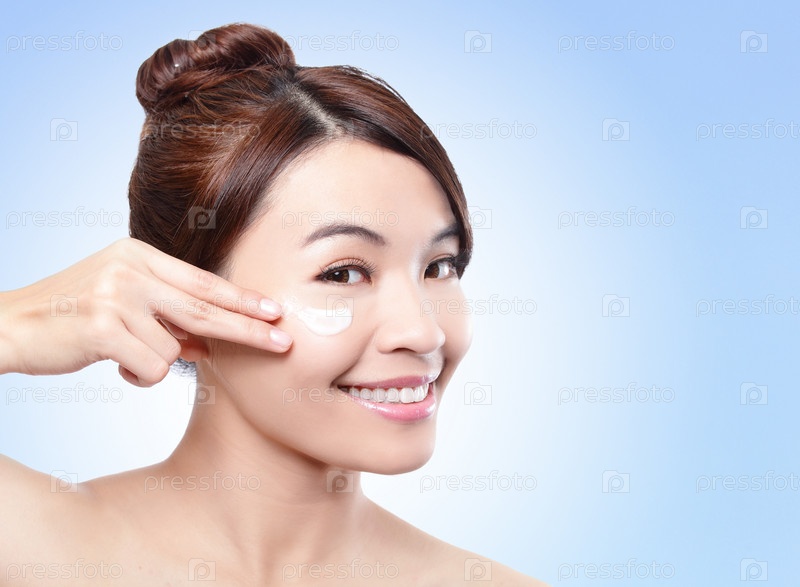 Красивая женщина наносит увлажняющий крем