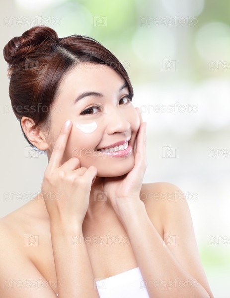 Красивая женщина наносит увлажняющий крем