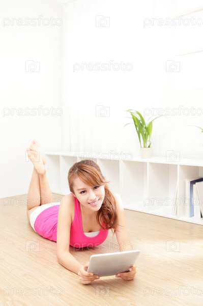 Счастливая женщина с планшетом