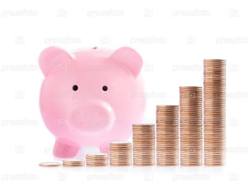 Розовая копилка и монеты